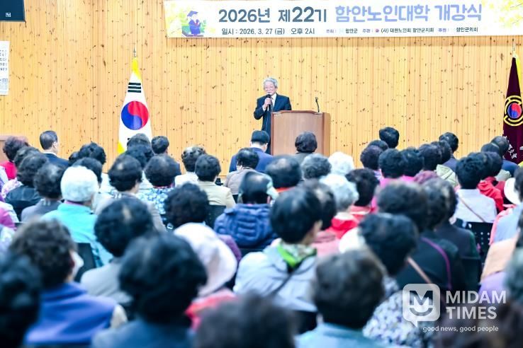 미담타임스 황명수 기자 | 함안군은 지난 27일 (사)대한노인회 함안군지회 부설 노인대학 개강식을 함안군노인복지회관에서 개최했다고 밝혔다.