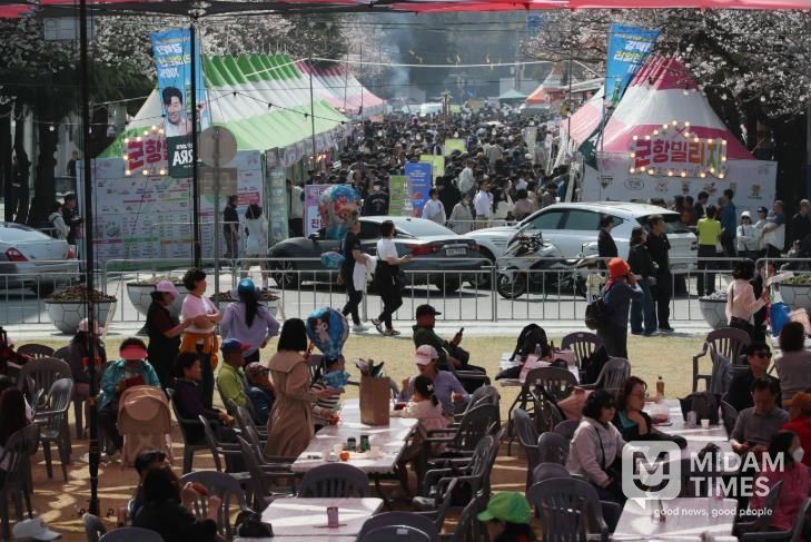 이곳에서는 만개한 벚꽃 아래에서 사진 촬영을 즐기는 사람들이 넘쳐나며 지역 경제 활성화에도 기여하고 있다.