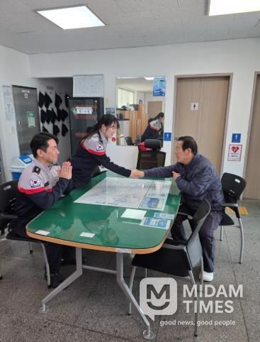 미담타임스 김준완 기자 | 울진해양경찰서는 후포파출소 소속 경찰관들의 도움으로 길에서 쓰러진 70대 여성이 건강을 회복한 가운데, 가족이 직접 파출소를 찾아 감사의 마음을 전해 지역사회에 훈훈함을 전하고 있다고 밝혔다.