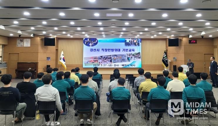 훈련 당일에는 경산시청 직장민방위대원을 대상으로 비상시 국민 행동 요령 영상을 시청하고, 민방위 전문 강사의 교육을 통해 조직 구성과 임무, 안전 디딤돌 앱 활용 방법, 민방위 운영 전반에 대한 교육이 이루어졌다.