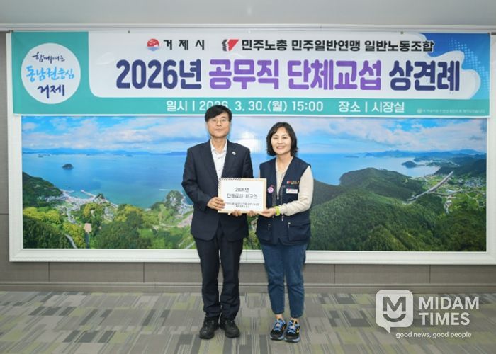 미담타임스 황명수 기자 | 거제시는 3월 30일 시장실에서 민주노총 민주일반연맹 일반노동조합과 2026년 단체교섭을 위한 상견례를 개최했다고 밝혔다.