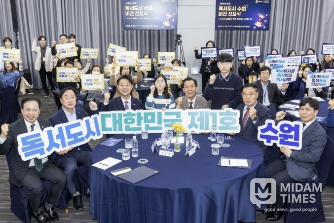 미담타임스 정주환 기자 | 지방정부 최초로 ‘독서국가’ 선언에 동참한 수원시가 ‘독서도시 수원’ 비전을 선포했다. 비전 선포식은 3월 30일 시청 중회의실에서 열렸다.