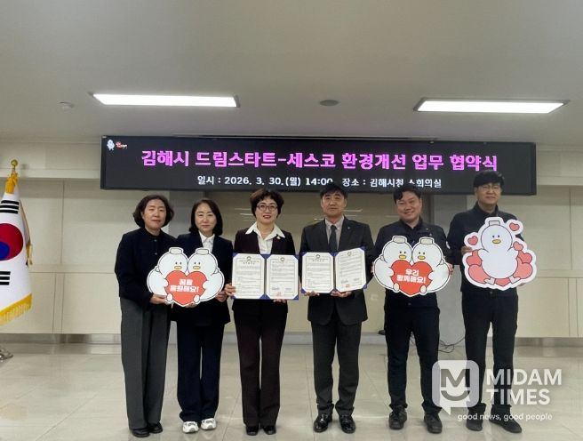 미담타임스 황명수 기자 | 김해시는 지난 30일 주거 환경이 열악한 취약계층 아동 가구를 대상으로 ‘2026년 드림스타트 꿈을 키우는 클린 홈 사업’을 추진하기 위해 세스코홈케어와 업무 협약을 체결했다고 밝혔다.