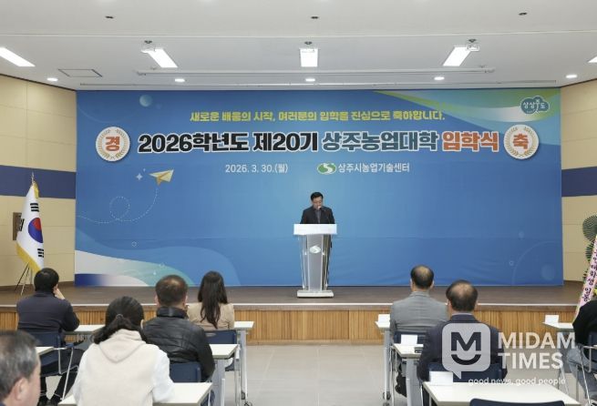미담타임스 김준완 기자 | 상주시농업기술센터는 3월 30일에 2026학년도 제20기 상주농업대학 ‘양액재배과’ 입학생 39명과 내빈 및 관계관이 참석한 가운데 농업기술센터 대강당에서 입학식을 개최했다.