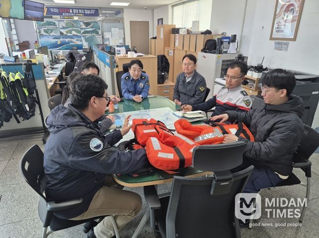 미담타임스 김준완 기자 | 한국해양교통안전공단 포항지사(지사장 최경일)는 울진해양경찰서(서장 배병학) 소속 후포파출소(소장 김진대) 해양경찰관 대상으로 2025년 10월 19일 시행된 '어선안전조업 및 어선원의 안전·보건 증진 등에 관한 법률'구명조끼 의무착용 확대 등에 대한 안전간담회를 실시했다.
