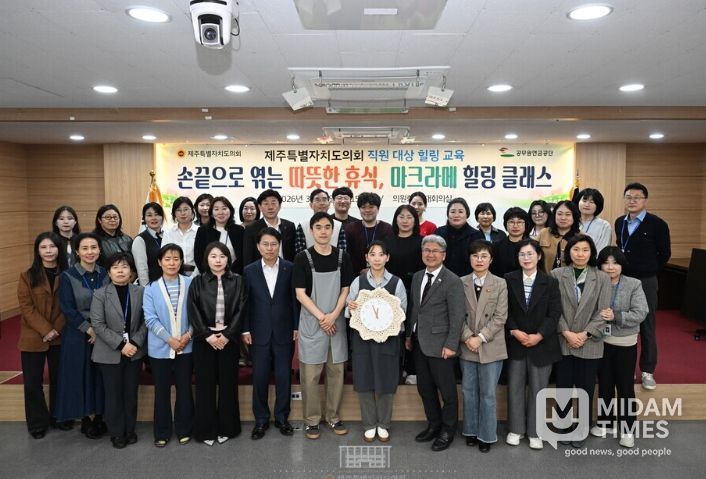 미담타임스 정인화 기자 | 제주특별자치도의회는 31일 오후 의원회관 대회의실에서 사무처 직원 40명을 대상으로 심신 안정과 직무 스트레스 해소를 위한 ‘직원 힐링 교육: 마크라메 원데이 클래스’를 개최했다.