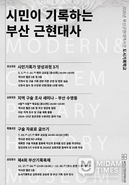 미담타임스 남혜영 기자 | 부산근현대역사관은 2026년 시민 대상 기록 프로그램의 일환으로 '도시기록학교'를 운영한다고 밝혔다.
