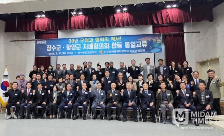 민주평화통일자문회의 함양군협의회는 지난 3월 31일 장수군청 군민회관에서 ‘함양·장수군 자매협의회 합동 통일교류’ 행사를 개최했다고 밝혔다.