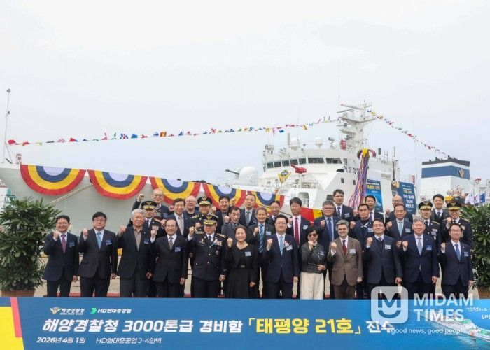 미담타임스 김준완 기자 | 해양경찰청은 4월 1일, 울산광역시 동구에 소재한 HD현대중공업㈜에서 3000톤급 신형 경비함 태평양 21호(3021함)의 진수식을 개최했다.
