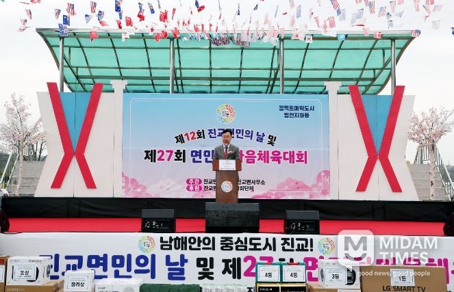 미담타임스 황명수 기자 | 하동군 진교면은 지난 1일 진교면 민다리체육공원에서 면민 화합과 건강 증진을 위한 ‘제12회 진교면민의 날 및 제27회 면민 한마음 체육대회’를 성황리에 개최했다.