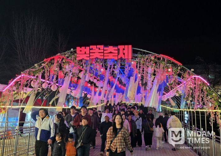 한편, 이번 축제는 방문객들이 축제장에 오래 머무르며 즐길 수 있도록 체류형 콘텐츠와 감성 체험 프로그램을 대폭 강화했다. 타로와 사주를 통해 고민을 나누는 ‘벚꽃 마음상담소’를 비롯해 화려한 조명으로 밤을 수놓는 미디어 아트 ‘빛의 벽’, 소망을 담은 ‘벚꽃 소원 터널’ 등 다채로운 신규 콘텐츠가 관광객들의 감성을 자극한다. 특히 벚꽃 아래서 편안하게 휴식을 취할 수 있는 ‘체리블룸 버블 라운지’는 이번 축제의 백미로 꼽힌다.