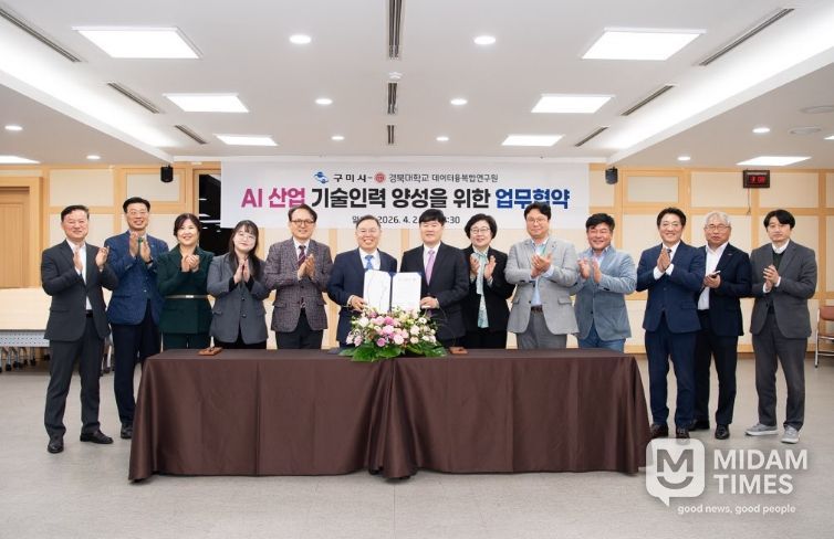 미담타임스 김준완 기자 | 구미시는 2일 시청 대회의실에서 경북대학교 데이터융복합연구원(원장 정태옥)과‘AI 산업 기술인력 양성’을 위한 업무협약(MOU)을 체결했다. 이번 협약은 산업 현장에서 필요한 맞춤형 AI 전문인력을 양성하여 기업들의 AI전환을 지원하기 위해 마련됐다.