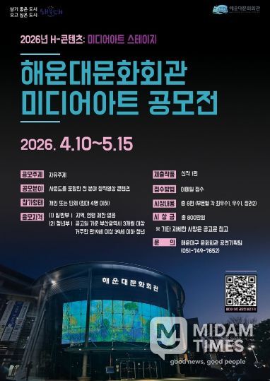 공모전과 관련한 자세한 사항은 해운대문화회관 홈페이지 또는 포스터의 QR코드를 통해 확인할 수 있다.