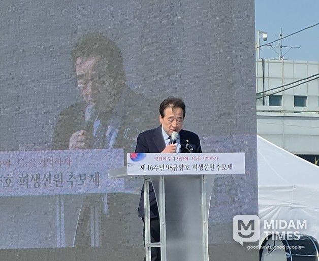 정동준 부의장은 추모사를 통해 “보국포장 추서와 의사자 인정에도 불구하고, 98금양호 선원들의 이름은 위령탑의 열악한 접근성 등으로 인해 우리 지역사회에서 오랫동안 충분히 주목받지 못했다”며 안타까움을 표했다.