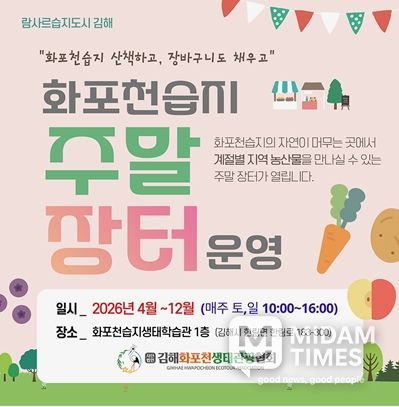 미담타임스 황명수 기자 | 김해시는 연말까지 화포천습지 생태학습관에서 주말장터가 운영된다고 3일 밝혔다.
