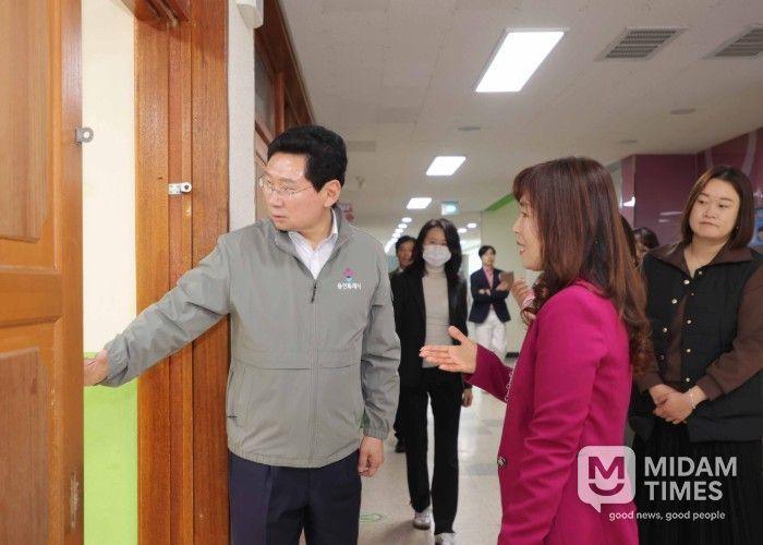 학부모들의 요청에 따라 진행된 이날 교통 봉사에서 이 시장은 교통지도에 앞서 학교 도서관 조성 현장을 방문해 교육환경 개선사업 추진 현황을 확인하고, 학교 관계자들과 함께 통학로와 학교 시설 전반을 점검했다.