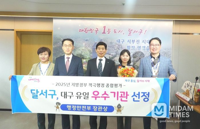 미담타임스 전해찬 기자 | 대구 달서구가 행정안전부 주관‘2025년 지방정부 적극행정 종합평가’에서 대구 자치구 중 유일하게 우수기관으로 선정되고, 장관 표창까지 수상하는 성과를 거뒀다.