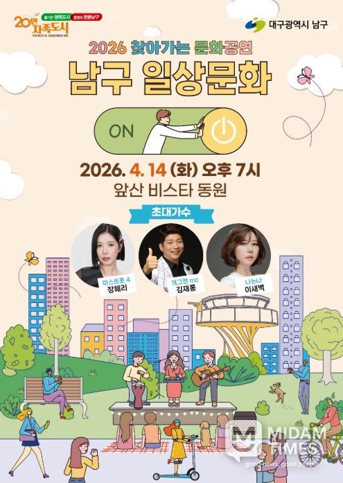 미담타임스 전해찬 기자 | 대구 남구는 지역 주민들에게 일상 속 문화 향유 기회를 확대하고, 지역 예술가들의 공연 활동을 지원하기 위해 ‘2026 찾아가는 문화공연’ 을 개최한다.