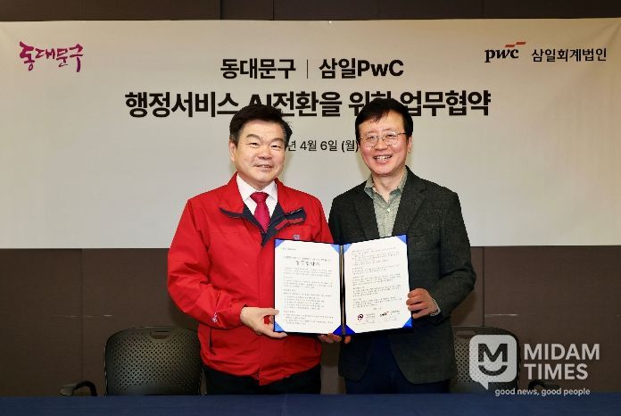 미담타임스 정주환 기자 | 서울 동대문구는 공공 행정서비스의 인공지능 전환, 이른바 AX(Artificial Intelligence Transformation)를 본격 추진하기 위해 삼일PwC와 업무협약을 맺었다. 구는 6일 서울 용산구 삼일PwC TS홀에서 협약식을 열고, 행정서비스 전반에 AI를 어디에, 어떤 방식으로 적용할지 함께 진단하고 자문받는 협력 체계를 마련했다고 밝혔다. 이번 협약은 새 기술을 들여오는 데 그치지 않고, 행정 효율을 높이면서도 구민이 실제로 체감하는 서비스 변화를 만들어내는 데 초점을 맞췄다. 민간의 전문성을 바탕으로 공공행정에 맞는 AX 모델을 짜보겠다는 뜻이다.