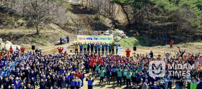 미담타임스 조혜리 기자 | 보령시는 제81회 식목일을 맞아 7일 청라면 장현리 산54-1번지 일원에서 기후변화 대응 및 탄소흡수원 확충을 위한 나무심기 행사가 공무원, 기업, 기관·단체, 시민 등 400여 명이 참여한 가운데 성황리에 개최됐다.