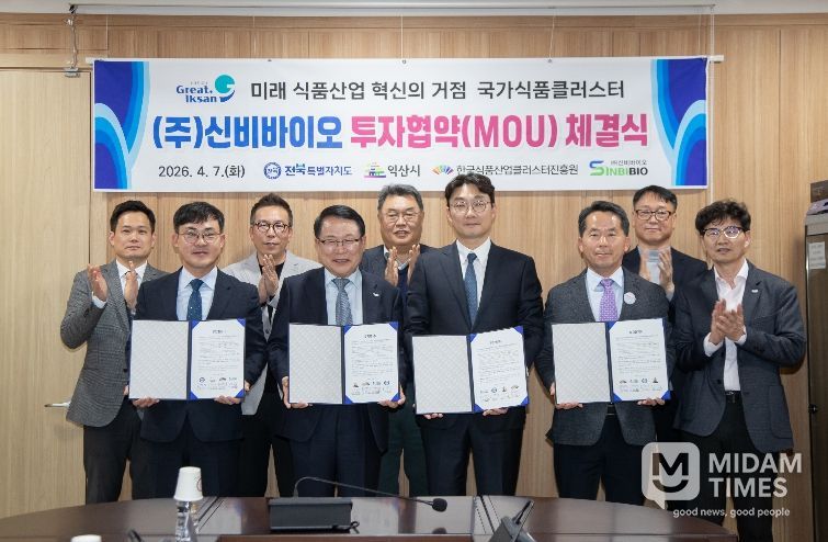 익산시는 7일 ㈜신비바이오(대표 이강원)와 국가식품클러스터 투자협약을 체결했다. 이날 협약에는 전북특별자치도, 한국식품산업클러스터진흥원도 함께 했다.