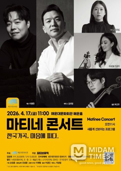 미담타임스 남혜영 기자 | 해운대문화회관은 17일 오전 11시 해운홀에서 ‘마티네 콘서트’를 개최한다.