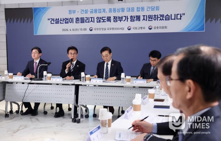 미담타임스 공한별 기자 | 김민석 국무총리는 중동전쟁 위기가 건설업계 전반으로 확산될 우려를 조기 차단하기 위하여, 국토교통부, 금융위원회와 함께 4월 8일 서울에서 건설·금융업권 합동 간담회를 개최하여 건설기업의 금융부문 애로사항을 수렴하고 지원방안을 논의했다.