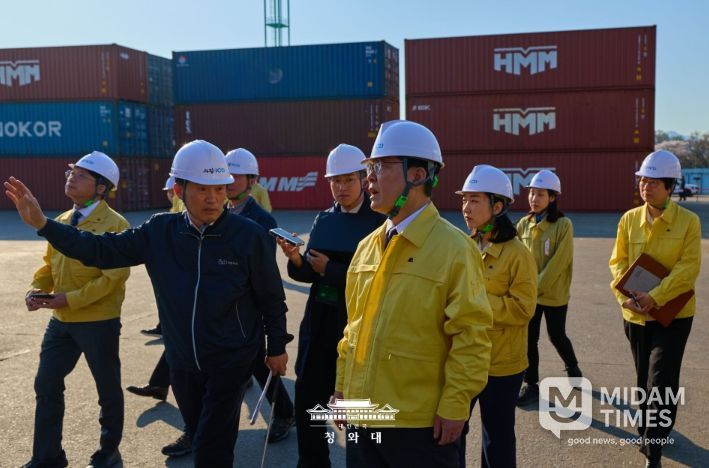 미담타임스 공한별 기자 | 이재명 대통령은 8일 오후, 의왕 소재 내륙컨테이너기지(ICD)를 방문하여 고유가 상황으로 어려움을 겪고 있는 화물운송 및 물류업계 종사자들과 간담회를 가졌다.