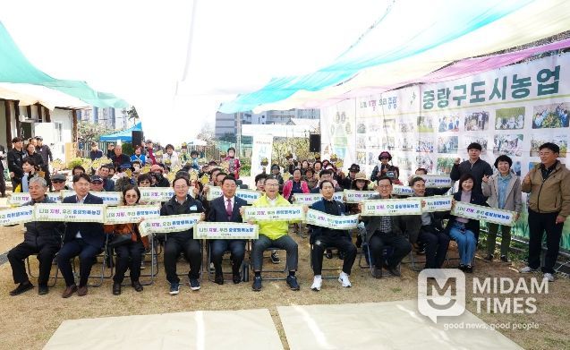 미담타임스 정주환 기자 | 중랑구는 4월 7일 중랑행복1농장에서 시농제를 개최하며 한 해 농사의 시작을 알렸다. 시농제는 풍년을 기원하는 전통 의식으로, 이날 행사에는 5.3:1의 경쟁률을 거쳐 선정된 신규 도시농부 124명이 참여했다. 아이들에게 더 많은 체험 기회를 제공하기 위해 어린이집과 지역아동센터 등 26개 기관에 우선 배정했으며, 이를 통해 어린이들이 자연과 농업을 체험할 수 있는 기회를 마련했다.