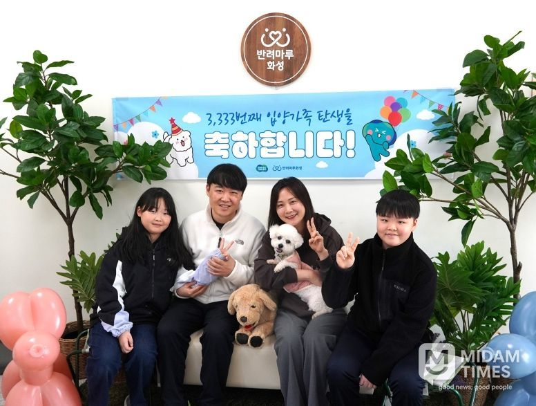 미담타임스 정주환 기자 | 경기 서부권을 대표하는 반려동물 테마파크 ‘반려마루 화성’에서 3,333번째 입양가족이 탄생했다. 2013년 ‘경기도 도우미견나눔센터’로 처음 문을 연 이후 13년 만에 거둔 성과로 ‘반려마루 화성’은 그동안 유기견 3,068마리, 유기묘 265마리를 입양시켰다.