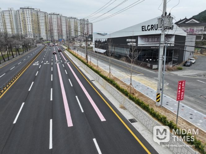 이와 함께 가로수 하부에는 황금사철 5,000주를 띠녹지 형태로 식재해 차도와 보행로를 시각적으로 분리하고 보행 안정성을 높였다.