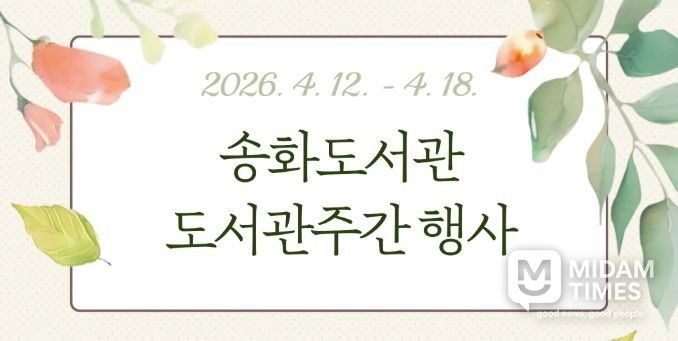 미담타임스 김준완 기자 | 송화도서관은 제62회 도서관주간과 세계 책의 날을 맞아 오는 12일부터 18일까지 ‘도서관 속 작은 펼침, 세상을 여는 큰 열림’을 주제로 다양한 강연과 행사를 진행한다.