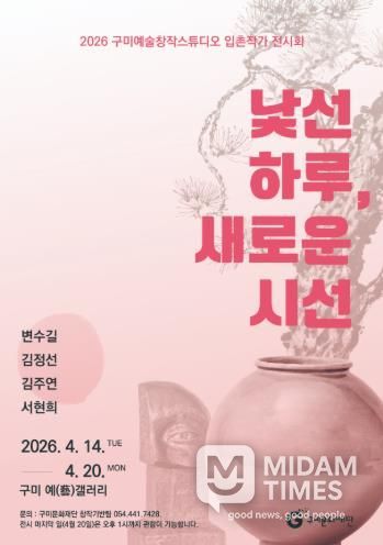 미담타임스 김준완 기자 | 구미문화재단은 오는 2026년 4월 14일부터 4월 20일까지 구미 예(藝) 갤러리에서 ‘낯선 하루, 새로운 시선展’을 개최한다.