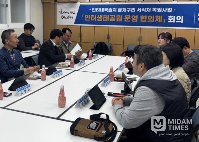9일에는 안터생태교육센터에서 운영협의체 회의를 열고 복원사업 추진 현황 보고, 사전모니터링 및 기본계획 용역 추진사항 공유, 관련 의견 수렴 등을 진행했다.