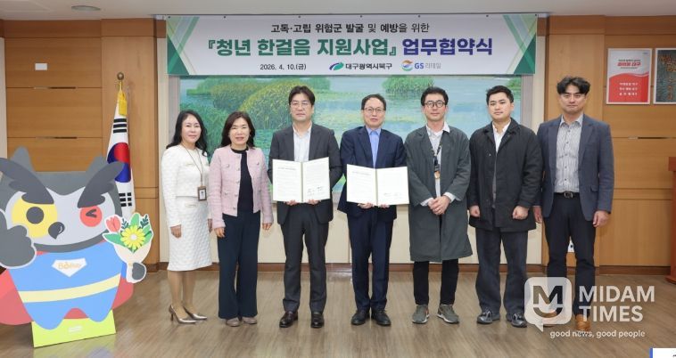 미담타임스 전해찬 기자 | 대구 북구청은 GS리테일(GS25 대구경북본부)과 4월 10일 '청년 한걸음 지원사업' 추진을 위한 업무협약을 체결했다.