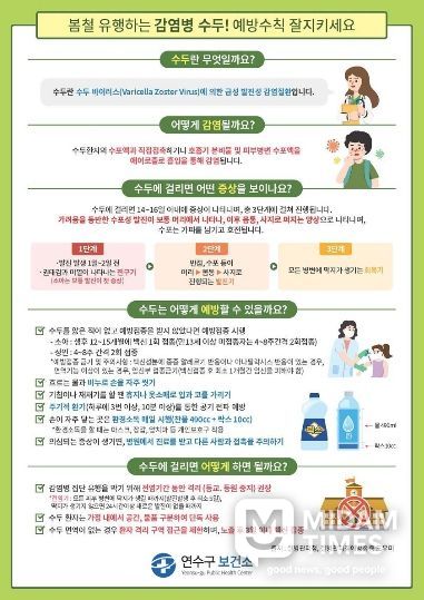 미담타임스 정주환 기자 | 연수구가 봄철 개학 이후 학교 내 단체생활이 활발해지면서 학령기 아동·청소년을 중심으로 수두 환자가 증가함에 따라 지역사회의 세심한 관찰과 주의를 당부했다.