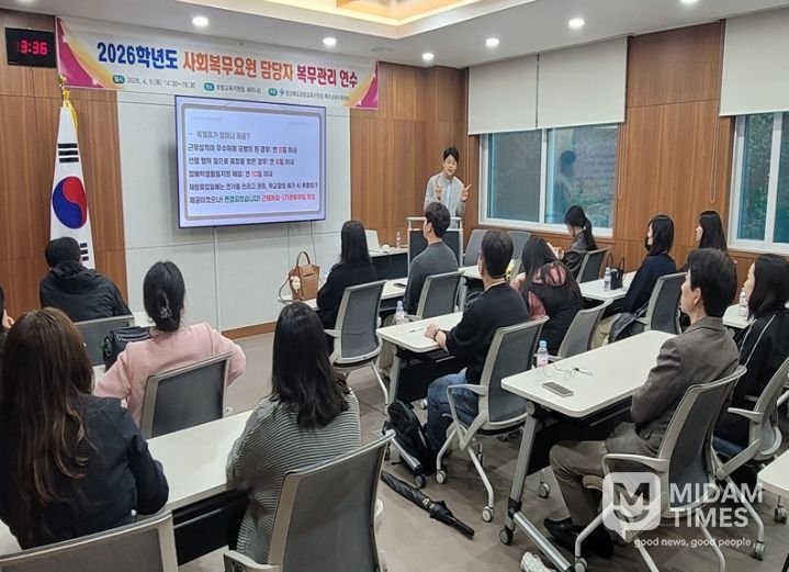 미담타임스 김준완 기자 | 경상북도포항교육지원청은 2026년 4월 9일 포항교육지원청 4층 세미나실에서 사회복무요원 담당자 복무관리 역량 강화 연수를 실시했다.