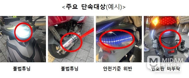 이번 단속은 주요 도로와 이륜자동차 운행 밀집 지역을 중심으로 구·군, 대구경찰청, 한국교통안전공단 대구경북본부, 자동차정비조합 등 유관기관이 합동으로 진행한다.