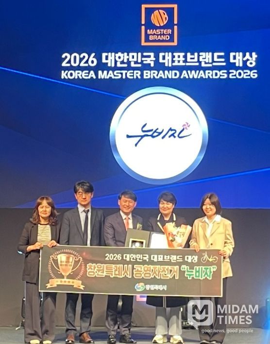 미담타임스 황명수 기자 | 창원특례시는 대표적 친환경 교통수단인 공영자전거 ‘누비자(Nubija)’가 2026년 대한민국 대표브랜드 대상에서 공공자전거 부문 “대상”을 수상하는 영예를 안았다.