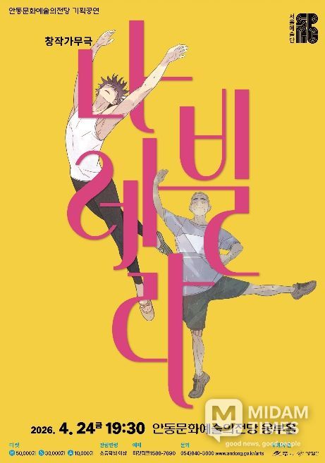 미담타임스 김준완 기자 | 안동문화예술의전당은 시민들에게 수준 높은 문화 향유 기회를 제공하고 지역 간 문화 격차를 해소하기 위해, 서울예술단의 대표 레퍼토리인 창작가무극 ‘나빌레라’를 오는 4월 24일 오후 7시 30분 웅부홀 무대에 올린다고 밝혔다.