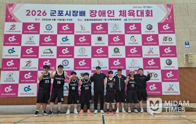 미담타임스 황명수 기자 | 사천시 장애인종합복지관 발달장애인 농구단인 ‘사천 제니우스’가 지난 11일 군포 국민체육센터에서 열린 ‘제1회 군포시장배 장애인농구대회’ 2부 성인부에서 우승을 차지했다.