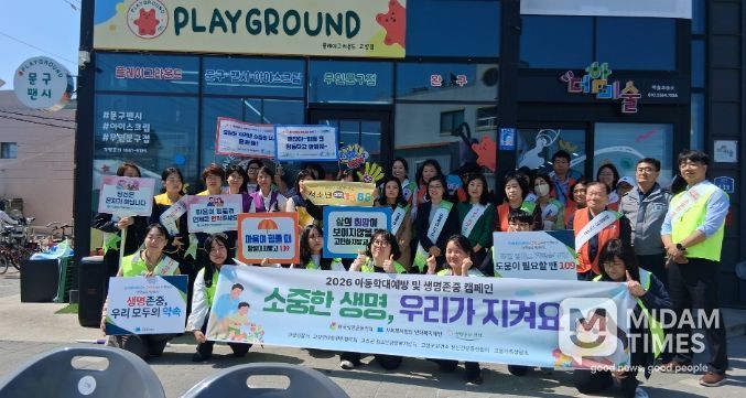 미담타임스 황명수 기자 | 고성군은 4월 15일 고성읍 서외오거리 일원에서 고성군아동위원 등 45여 명이 참여한 가운데 생명 존중 문화 조성을 위한'2026년 생명 존중 캠페인'을 실시했다.