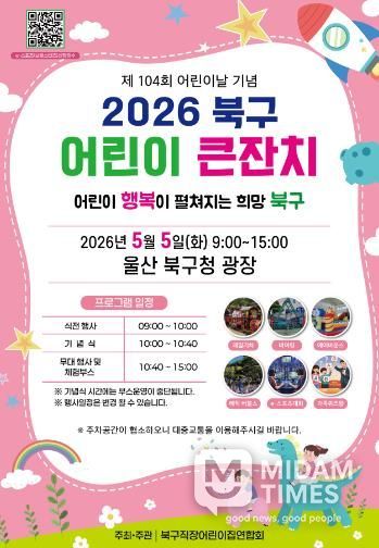 미담타임스 김준완 기자 | 울산 북구 어린이 큰잔치가 5월 5일 북구청 광장에서 열린다.