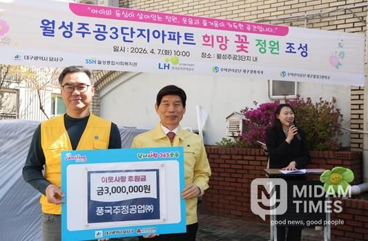 이태훈 달서구청장은 “지역사회를 위해 따뜻한 나눔을 실천해 주신 풍국주정공업에 깊이 감사드린다”며 “전달해 주신 후원금은 복지 사각지대를 해소하고 사회안전망을 강화하는 데 소중히 사용하겠다”고 밝혔다. 이어 “희망 꽃 정원 조성 활동에도 함께해 주셔서 감사드린다”고 덧붙였다.