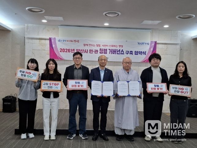 미담타임스 황명수 기자 | 양산시립박물관과 통도사 성보박물관(관장 진응 스님)은 16일 양산시립박물관 1층 대강당에서 2026년 민·관 청렴 거버넌스 구축을 위한 협약을 체결했다.