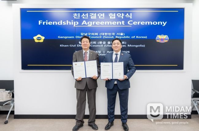 미담타임스 정주환 기자 | 강남구의회는 16일 오전 강남구의회를 내방한 몽골 항올구시민대표회의(의장 바트-오르길) 대표단을 접견하고 협약을 체결했다.