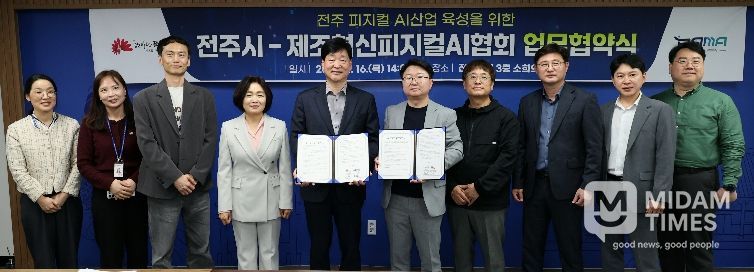 시와 제조혁신피지컬AI협회는 16일 시청 3층 소회의실에서 윤동욱 전주시장 권한대행 부시장과 조용로 협회장 등 양 기관 관계자들이 참석한 가운데 ‘피지컬 AI 산업 육성을 위한 업무협약’을 체결했다.