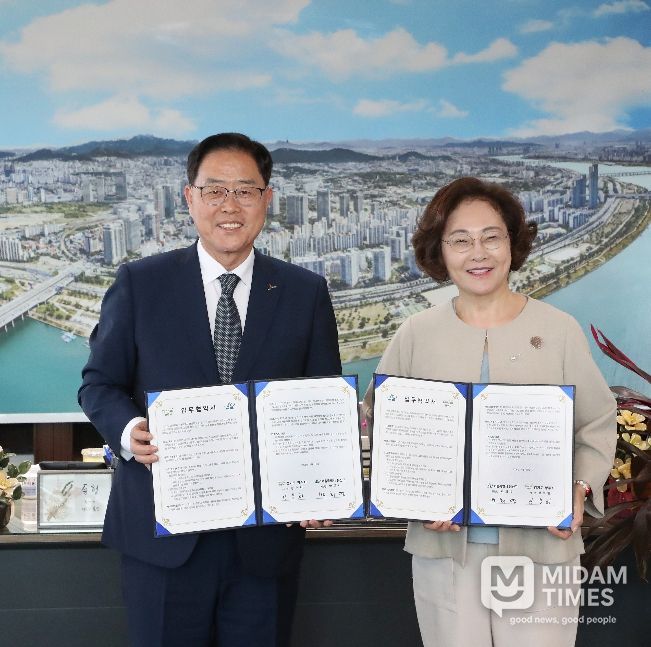 미담타임스 정주환 기자 | 서울 용산구는 16일 구청장실에서 경기도 양주시와 옛 용산가족휴양소 부지(양주시 소재) 공공시설 조성 협력을 위한 업무협약을 체결했다. 이날 협약식에는 박희영 용산구청장과 강수현 양주시장을 비롯한 양측 관계자들이 참석했다.