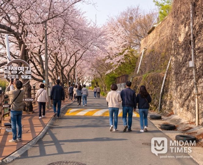 미담타임스 김준완 기자 | 2026 벚꽃 개화 시즌을 맞아 울산의 벚꽃 명소 중 한 곳으로 꼽히는 남구 장생옛길을 찾은 방문객 가운데 10명 중 7명이 외지인인 것으로 집계됐다.