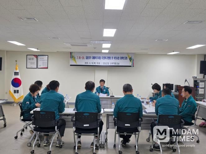 미담타임스 황명수 기자 | 산청군은 지난 16일 군청 다목적회의실에서 ‘7.16.~20. 집중호우 재해복구사업 추진(복구)현황 및 부진 대책보고회’를 개최했다고 17일 밝혔다.